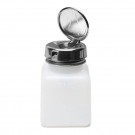 ESD / antistatická dávkovací lahvička se systémem otevírání Take-Along. HDPE polyethylen. Částečně průhledná bílá barva, objem 180 ml....