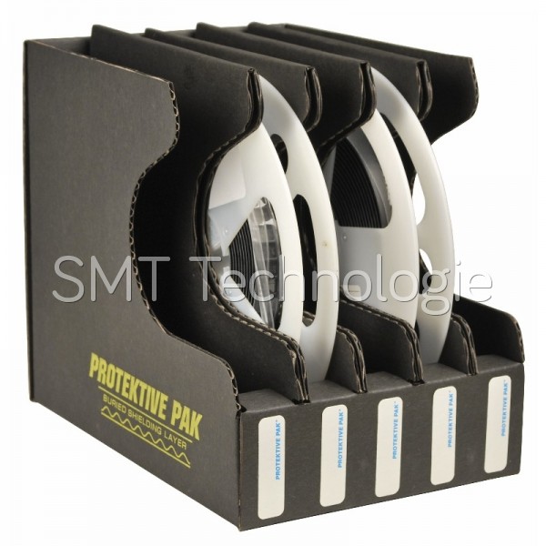ESD / antistatický držák na cívky s SMD komponentami. Vyroben z vodivé lepenky Protektive Pak®, pojme až 5 kotoučů o max. průměru kotouče 178 mm. Rozměry držáku 146 x 210 x 184 mm.