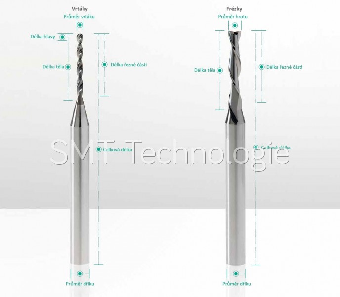 | Typ frézy | Geometrické vlastnosti | Materiály DPS |
