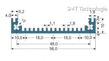 Hliníkový profil 56 mm pro konstrukci stabilních krabiček s libovolnými rozměry. Délka profilu 165 mm.